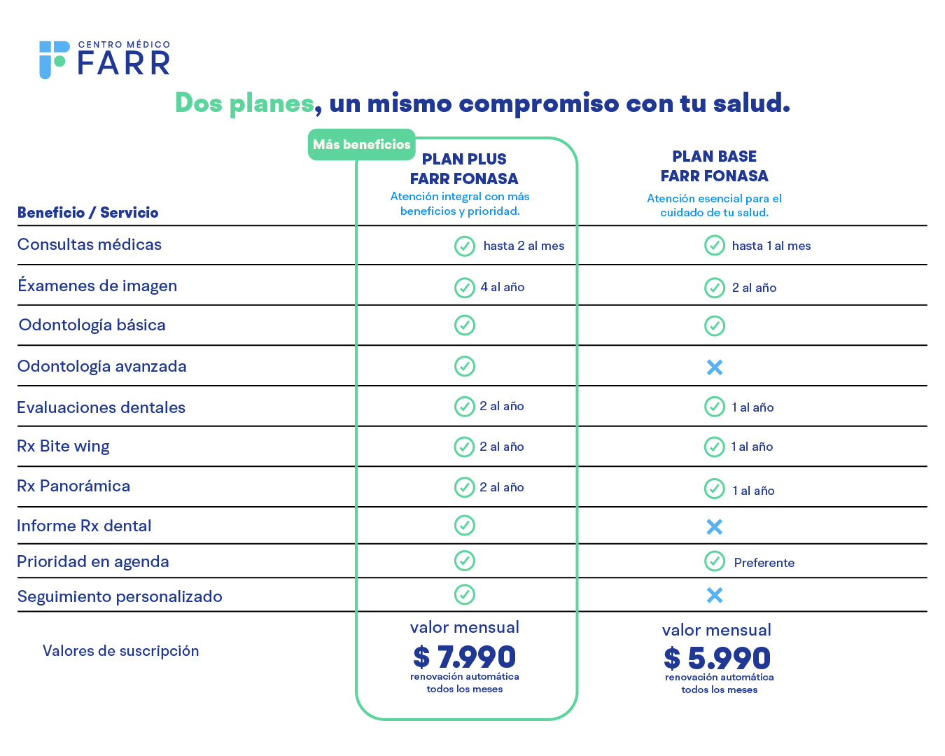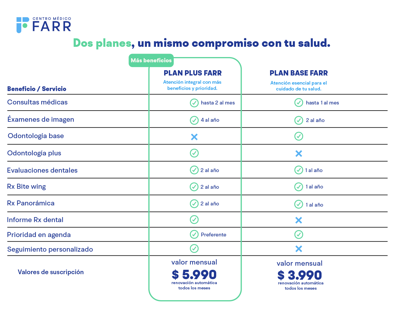 En el Centro Médico Farr, sabemos que tu bienestar y el de tu familia es nuestra mayor prioridad. Por eso, te ofrecemos una variedad de planes de salud pensados para adaptarse a tus necesidades, garantizando atención de calidad, cercana y profesional. Aquí encontrarás alternativas flexibles que te brindarán tranquilidad y acceso a una amplia gama de servicios médicos. Nuestro compromiso es ofrecerte un trato cercano y personalizado, con profesionales dedicados a tu salud.